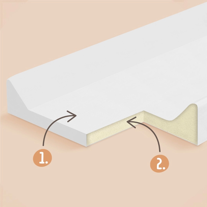 Η επιφάνεια της αλλαξιέρας είναι επενδεδυμένη με υλικό χωρίς φθαλικές ενώσεις (phthalate-free foil), ειδικά σχεδιασμένο για να μην ερεθίζει το ευαίσθητο δέρμα του μωρού. Τα πλαϊνά της είναι προφίλ, ώστε να αποτρέπουν το μωρό από το να κυλήσει, ενώ το εσωτερικό είναι γεμισμένο με μαλακό αφρό πολυουρεθάνης (100% polyester) που προσφέρει άνεση και σταθερότητα.