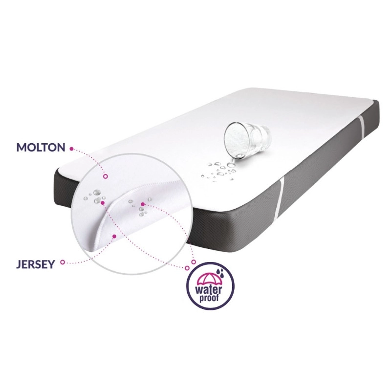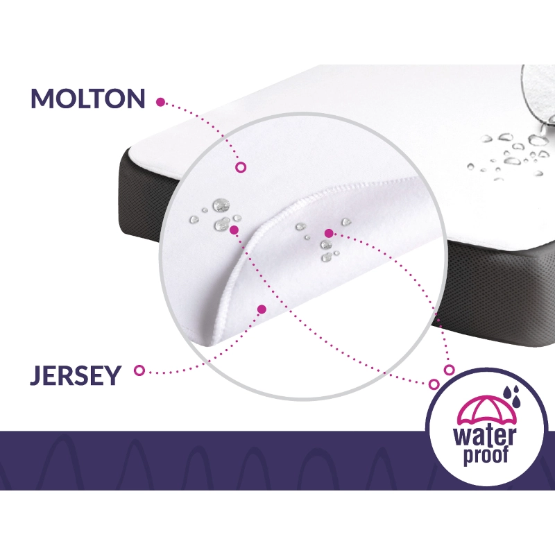 Η επάνω επιφάνεια είναι κατασκευασμένη από καινοτόμο ύφασμα Molton, το οποίο είναι εξαιρετικά απαλό και ευχάριστο στην αφή, προσφέροντας ένα άνετο και ασφαλές περιβάλλον ύπνου. Η κάτω πλευρά αποτελείται από βαμβακερό jersey, ενισχύοντας τη μαλακότητα, την ελαστικότητα και την ανθεκτικότητα του προϊόντος.