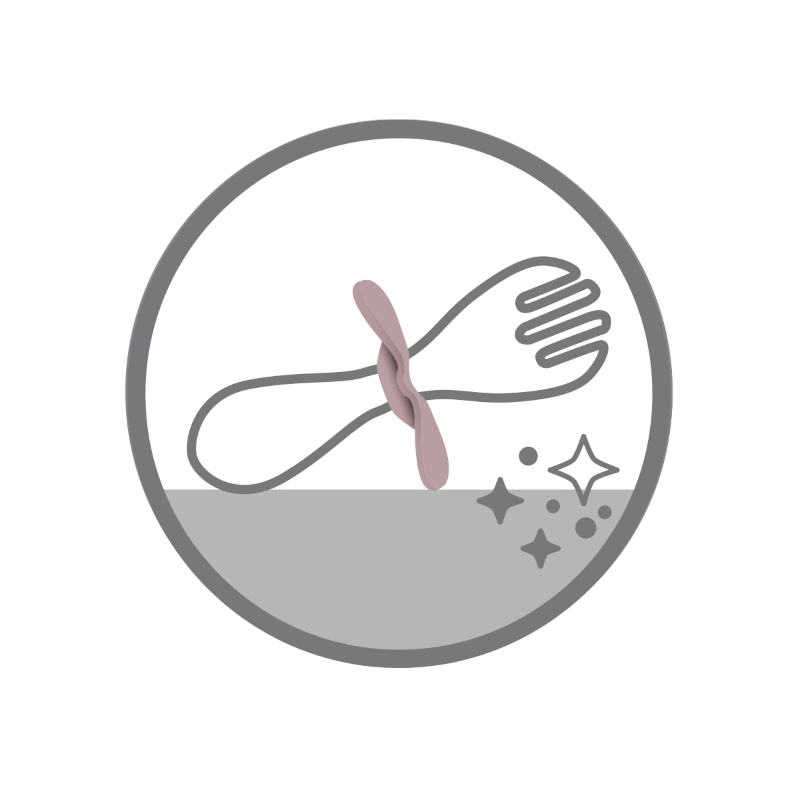 Ο ειδικός προστατευτικός δακτύλιος αποτρέπει την υπερβολική εισαγωγή του κουταλιού ή του πιρουνιού στο στόμα, μειώνοντας τον κίνδυνο πνιγμού.