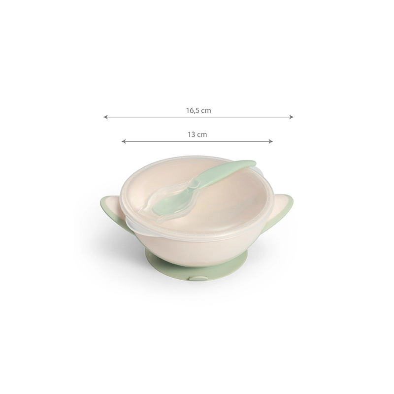 Η ειδική βεντούζα στη βάση εξασφαλίζει σταθερότητα και αποτρέπει τα ανεπιθύμητα ατυχήματα με αναποδογυρισμένα πιάτα και λεκέδες. Το καπάκι είναι εφοδιασμένο με hygienic θήκη για το κουτάλι, ώστε να παραμένει καθαρό και πάντα διαθέσιμο. Η πρακτική χωρητικότητα των 300 ml και η διάμετρος 13 εκ. καθιστούν το μπολ ιδανικό για τις πρώτες σούπες, πουρέδες και μικρά γεύματα.