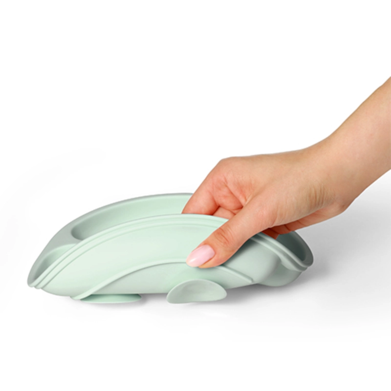 Το πιάτο σιλικόνης είναι ανθεκτικό, ευέλικτο και εύκολο στο καθάρισμα, καθώς μπορεί να τοποθετηθεί με ασφάλεια τόσο στο πλυντήριο πιάτων όσο και στον φούρνο μικροκυμάτων.