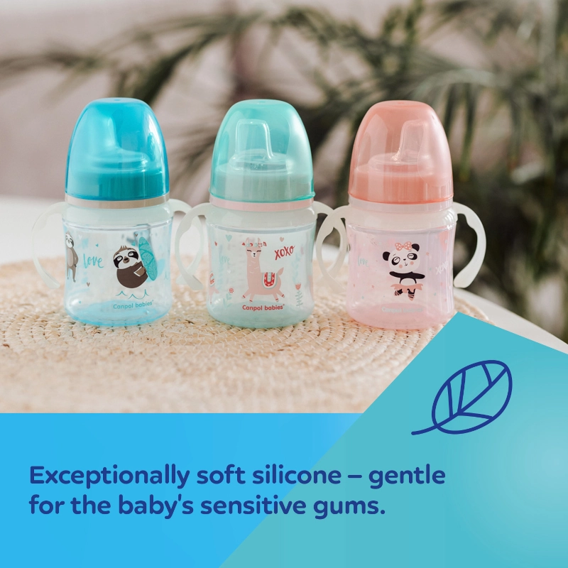 Το εκπαιδευτικό ποτηράκι Canpol είναι διαισθητικό, μοιάζει με το να πίνετε από το μπιμπερό, επιτρέποντας μια γρήγορη και εύκολη μετάβαση από το μπιμπερό στο ποτήρι – ιδανικό για να μάθετε πώς να πίνετε ανεξάρτητα μετά την ηλικία των 6 μηνών. Το στόμιο δεν παρουσιάζει διαρροή ακόμα κι αν το παιδί γέρνει ή ρίξει το ποτηράκι. Το εξαιρετικά απαλό στόμιο είναι κατασκευασμένο από λεπτή σιλικόνη, ασφαλές για τα ευαίσθητα ούλα του παιδιού. Το σχήμα του στομίου παρέχει σωστή στήριξη στα χείλη, γεγονός που διευκολύνει την εκμάθηση να πίνετε από το ποτηράκι. Είναι ελαφρύ και έχει άνετες λαβές που διευκολύνουν το παιδί να το κρατάει. Επιπλέον, οι λαβές λάμπουν στο σκοτάδι, ώστε να μπορείτε να βρείτε το κύπελλο πιο γρήγορα τη νύχτα. Ο μικρός αριθμός στοιχείων καθιστά εύκολη τη συναρμολόγηση και το πλύσιμο – το εκπαιδευτικό ποτηράκι δεν έχει περιττές γωνίες και σχισμές, ώστε να μπορείτε να πλένετε γρήγορα όλα τα εξαρτήματα και να ζεματίζετε το στόμιο. Το εκπαιδευτικό ποτηράκι Canpol είναι διαφανές, το οποίο σας επιτρέπει να ελέγχετε την ποσότητα των υγρών που πίνει το παιδί σας. Το κάλυμμα επιτρέπει το υγιεινό κλείσιμο και προστατεύει το στόμιο από το να λερωθεί. • Προϊόν χωρίς δισφαινόλη Α • Προτεινόμενη ηλικία από 6 μηνών. • Διαισθητικό – μοιάζει με το να πίνεις από το μπουκάλι. • Στόμιο που δεν στάζει – διευκολύνει την εκμάθηση να πίνετε ανεξάρτητα. • Το σχήμα του στομίου παρέχει σωστή στήριξη στα χείλη. • Μαλακή σιλικόνη – απαλή για τα ευαίσθητα ούλα του μωρού σας. • Ελαφρύ και εύχρηστο – εύκολο στην κατανόηση. • Οι λαμπερές λαβές διευκολύνουν την εύρεση του φλιτζανιού τη νύχτα. • Εύκολο στη συναρμολόγηση και το πλύσιμο, το στόμιο μπορεί να μαγειρευτεί στον ατμό. • Διαφανές – σας επιτρέπει να ελέγχετε την ποσότητα του υγρού στο κύπελλο. Θέλετε βοήθεια σχετικά με τα μεγέθη? Διαβάστε περισσότερα εδώ Ακολουθήστε μας στα social media