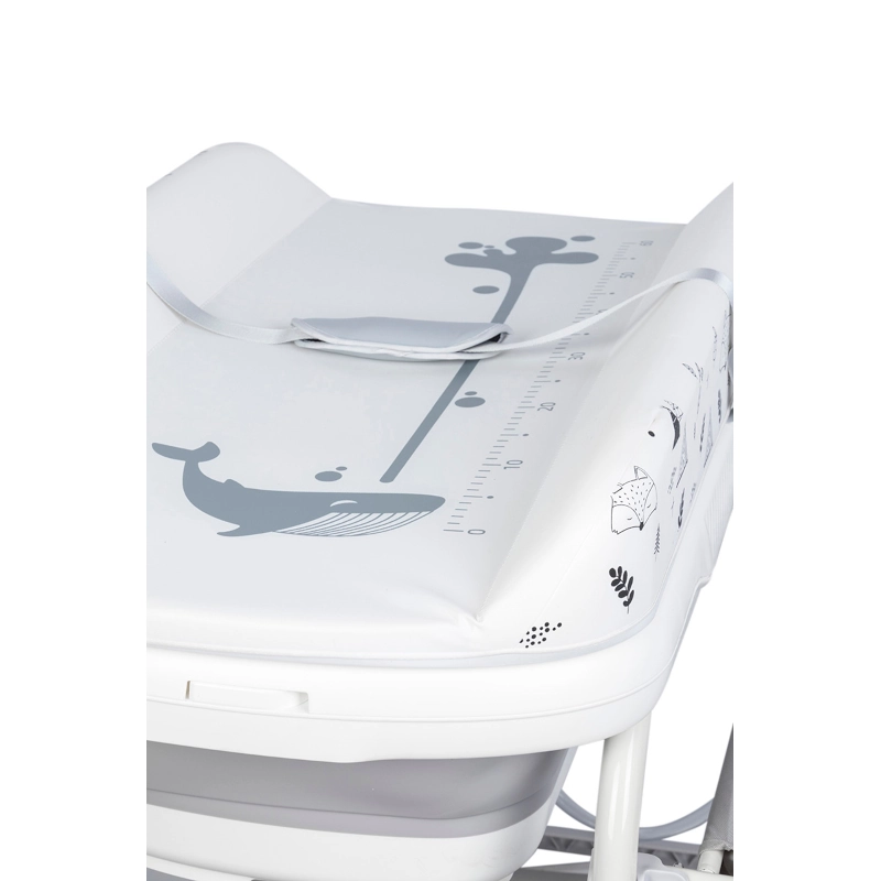 Το FLIP είναι επίσης μια βολική βρεφική αλλαξιέρα. Διαθέτει μια μεγάλη, άνετη αλλαξιέρα που είναι στερεωμένη στο πλάι του σκελετού με έναν ειδικό μεντεσέ. Ο μεντεσές σάς επιτρέπει να τοποθετήσετε γρήγορα την αλλαξιέρα στην μπανιέρα, δημιουργώντας έτσι μια αλλαξιέρα. Η αλλαξιέρα είναι επενδυμένη με ένα ανθεκτικό στη βρωμιά ματ λαδόπανο με όμορφα μοτίβα κινουμένων σχεδίων και μια ταινία μέτρησης ύψους παιδιού. Η αλλαξιέρα βρίσκεται σταθερά στην μπανιέρα και επιπλέον ασφαλίζεται με ρυθμιζόμενη ζώνη. Επιπλέον, μπορείτε να χρησιμοποιήσετε μια ζώνη για να ασφαλίσετε το παιδί σας όταν βρίσκεται ξαπλωμένο στην μπανιέρα αλλαξιέρα. Επιλέξτε την COLIBRO μπανιέρα αλλαξιέρα FLIP 2 ΣΕ 1 και επωφεληθείτε από την πολυλειτουργικότητά της.
