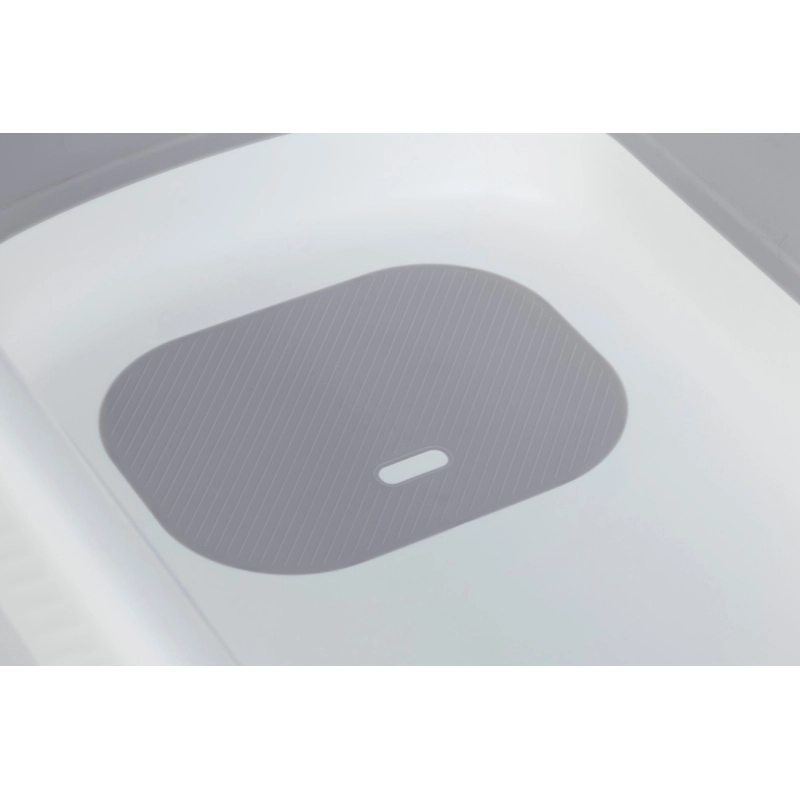 Το FLIP ως μπανιέρα μωρού είναι ένα εξαιρετικά μοντέρνο και άρτια εξοπλισμένο προϊόν. Ανακαλύψτε τα κύρια πλεονεκτήματά του: – Η αποχέτευση με λάστιχο σάς επιτρέπει να αδειάζετε εύκολα και αβίαστα το νερό από την μπανιέρα. Παρέχει επίσης πρόσθετη προστασία για το πώμα αποστράγγισης σιλικόνης, εμποδίζοντας το νερό να στάξει στο πάτωμα. – Το ενσωματωμένο θερμόμετρο θα δείξει εάν το νερό βρίσκεται στη σωστή θερμοκρασία ή εάν είναι πολύ κρύο/πολύ ζεστό. Ξεχάστε να μετράτε τη θερμοκρασία σας με τον αγκώνα σας. Αγγίξτε το θερμόμετρο και θα δείξει την τρέχουσα θερμοκρασία για 10 δευτερόλεπτα. Αν το περίγραμμά του λάμπει πράσινο, το νερό είναι κατάλληλο για μπάνιο, αν λάμπει μπλε, το νερό είναι πολύ κρύο και ένα κόκκινο περίγραμμα σημαίνει ότι το νερό είναι πολύ ζεστό για το μωρό. – Η βάση ντους σάς επιτρέπει να τοποθετήσετε την κεφαλή του ντους στο άκρο της μπανιέρας, αφήνοντας και τα δύο χέρια ελεύθερα. Το μπάνιο ενός δραστήριου μωρού θα είναι πολύ πιο εύκολο. – Ενσωματωμένο αντιολισθητικό χαλάκι που εμποδίζει το μωρό να γλιστρήσει μέσα στην μπανιέρα αλλαξιέρα . – Δυνατότητα εγκατάστασης επιπλέον ξαπλώστρας (οι άκρες της μπανιέρας μωρού επιτρέπουν την εγκατάσταση ξαπλώστρας. Η ξαπλώστρα δεν περιλαμβάνεται στο σετ).