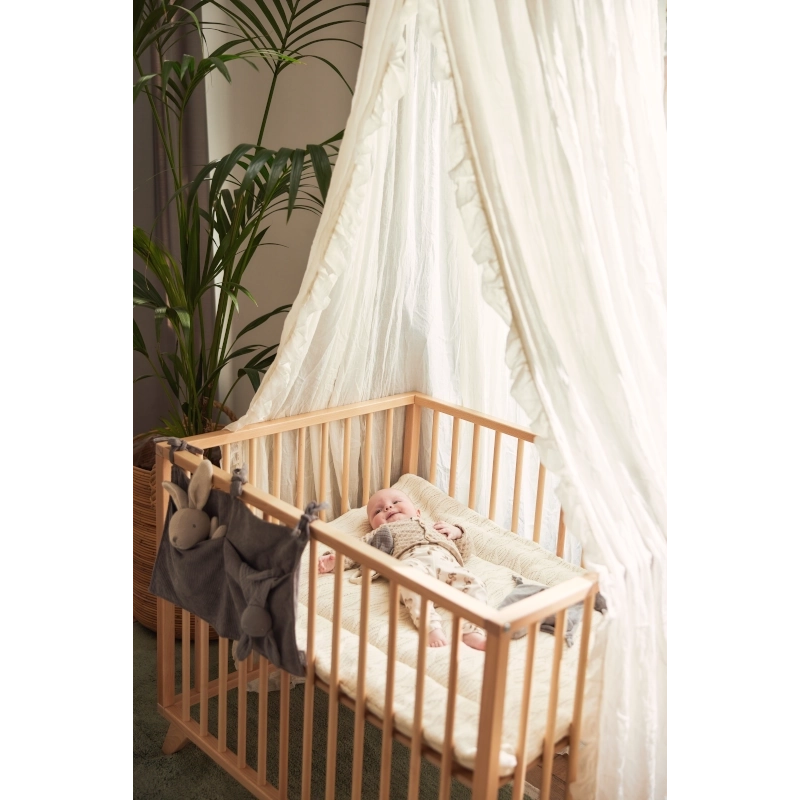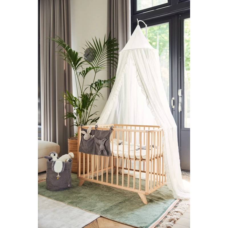 Αυτή η όμορφη κουνουπιέρα με vintage εμφάνιση με βολάν μετατρέπει την κούνια σε ένα άνετο μέρος για ύπνο. Και θα δείτε: μόλις θα έχετε κρεμάσει το πέπλο, το δωμάτιο του μωρού θα έχει ολοκληρωθεί. Εξασφαλίζει ζεστή ατμόσφαιρα και ασφάλεια. Χρώμα Eίναι διαθέσιμη σε εννέα όμορφα μοντέρνα χρώματα όπως αυτό το ιβουάρ . Με αυτό μπορείτε σίγουρα να επιλέξετε το χρώμα που ταιριάζει με την χρωματική παλέτα του βρεφικού δωματίου. Μέγεθος Μήκος 245 cm. Με το ταιριαστό κοντάρι κορυφής των 220 cm, κρέμεται αμέσως στο σωστό ύψος. Έχει διάμετρο 55 cm. Υλικό Η κουνουπιέρα είναι κατασκευασμένη από 80% πολυεστέρα και 20% βαμβάκι. Οι συμβουλές για το πλύσιμο ρούχων Μπορείτε να την πλύνετε σε πρόγραμμα πλυσίματος στο χέρι. Στη συνέχεια κρεμάστε τη στη φόρμα να στεγνώσει. Μην τη βάζετε στο στεγνωτήριο, ενώ επιτρέπεται το σιδέρωμα. Extra tip: καλή ατμόσφαιρα ακόμα και με μεγαλύτερα παιδιά Η κουνουπιέρα είναι ιδανική για το βρεφικό δωμάτιο. Μόλις κρέμεται, το δωμάτιο του μωρού αποκτά μία ζεστή ατμόσφαιρα. Μόλις το παιδί σας μεγαλώσει λίγο, η κουνουπιέρα θα ντύσει ξανά όμορφα το παιδικό του δωμάτιο και θα δώσει επίσης μια υπέροχη ατμόσφαιρα και μια ωραία αίσθηση ασφάλειας με ένα παιδικό κρεβάτι. Λεπτομέρειες προϊόντος Χρώμα: καφέ. Βάρος: 870 gr. Διατομή προϊόντος: 55 cm. Μήκος προϊόντος: 245 cm. Οδηγίες πλυσίματος: Πλύσιμο στο χέρι Θέλετε βοήθεια σχετικά με τα μεγέθη? Διαβάστε περισσότερα εδώ Ακολουθήστε μας στα social media