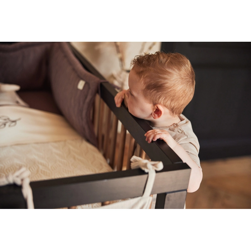Οποιαδήποτε βοήθεια με τον ύπνο όλη τη νύχτα είναι ευπρόσδεκτη. Αυτή η πλεκτή πάντα κούνιας είναι ένα ιδανικό μαξιλάρι για το κεφάλι του παιδιού σας. Όλα τα παιδιά μερικές φορές πέφτουν στις ράβδους της κούνιας κατά τη διάρκεια του ύπνου τους. Και αυτό διαταράσσει τον ύπνο όχι μόνο του μωρού σας, αλλά και τον δικό σας. Και ακριβώς… κάθε ώρα ύπνου είναι ιερή όταν έχεις μωρό. Μπορείτε εύκολα να δέσετε το πλήρως επενδεδυμένο προστατευτικό στα κάγκελα της κούνιας και να χρησιμοποιηθεί και από τις δύο πλευρές. Μια απαλή φλις πλευρά ή μια όμορφη πλεκτή πλευρά. Η πλεκτή πλευρά έχει το αναγνωρίσιμο μοτίβο από το θέμα Jollein’s Bliss Knit. Υλικό 50% βαμβάκι με 50% ακρυλικό, η πλάτη είναι από μαλακό φλις (πολυεστέρας) και επένδυση από ίνες. Πλύση Πλύσιμο με παρόμοια χρώματα στους 30 βαθμούς το πολύ και αφήνουμε να στεγνώσει. Ακολουθήστε τις οδηγίες πλύσης στην ετικέτα πλύσης. Λεπτομέρειες προϊόντος: Χρώμα: Καφέ. Βάρος: 890 gr. Πλάτος προϊόντος: 35 cm. Μήκος προϊόντος: 180 cm. Θέλετε βοήθεια σχετικά με τα μεγέθη? Διαβάστε περισσότερα εδώ Ακολουθήστε μας στα social media