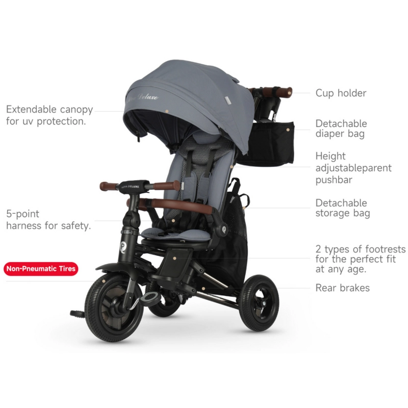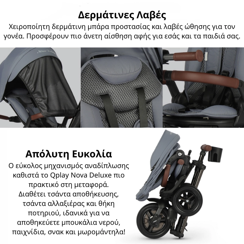 Το Nova Deluxe ξεχωρίζει από άλλα παιδικά τρίκυκλα χάρη στη μεγάλη διάρκεια χρήσης, την ευελιξία μετατροπών και την premium ποιότητα κατασκευής.
