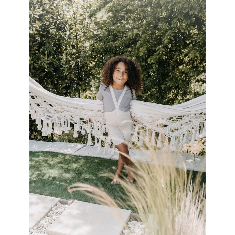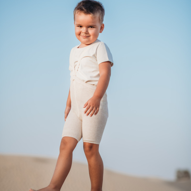 Το Cream Blend βαμβακερό κολάν είναι ένα μείγμα χρώματων μπεζ, λευκού και λίγο γκρι, δημιουργώντας ένα κρεμώδες όνειρο. Αυτή η υπόλευκη απόχρωση τα κάνει να ταιριάζουν εύκολα με άλλα ρούχα. Αυτή η υπόλευκη απόχρωση κάνει τα κολάν να ταιριάζουν εύκολα με άλλα ρούχα. Αυτό το μοναδικό κοντό κολάν με τιράντες θα συμβαδίσει ακόμα και με τα πιο δραστήρια μωρά και νήπια σε κάθε καλοκαιρινή περιπέτεια. Εξαιρετικά ανθεκτικό, λαχταριστά απαλό και κατασκευασμένο από 100% οργανικό βαμβάκι που επιτρέπει στο δέρμα να αναπνέει όμορφα τις πιο ζεστές μέρες. Φτιαγμένο με αγάπη στην καρδιά της Ευρώπης, Τσεχία. Παραδοσιακά κατασκευασμένο από ανθρώπους που αγαπούν τη δουλειά τους για δεκαετίες. Πιστοποιημένο από το OEKO-TEX® Standard 100 σε επίπεδο Κλάσης 1, η πιο αυστηρή πιστοποίηση που έχει σχεδιαστεί ειδικά για νεογέννητα έως νήπια ηλικίας έως τριών ετών. Εκτός από τις δοκιμές για επιβλαβείς χημικές ουσίες στις αυστηρότερες οριακές τιμές, οι μέθοδοι δοκιμής και επαλήθευσης εστιάζουν επίσης στην έντονη αντίσταση στο σάλιο ως πρόσθετη απαίτηση για την πιστοποίηση Κλάσης 1. Είναι σημαντικό το μικρό σας να φοράει πάντα το καλσόν με τιράντες με τον σωστό τρόπο (όπως φαίνεται σε όλες τις φωτογραφίες μας) – με τα τιραντάκια τοποθετημένα με ασφάλεια στον αριστερό ώμο και το άλλο στον δεξιό ώμο για να αποφύγετε γδαρσίματα. Τα τιραντάκια βοηθούν τους μικρούς τυχοδιώκτες να κινούνται ελεύθερα ενώ παίζουν και εξερευνούν τον κόσμο και πρέπει να χρησιμοποιούνται πάντα στη σωστή θέση. Αυτό δεν είναι προϊόν ύπνου, θυμηθείτε να μην αφήνετε το παιδί σας χωρίς επίβλεψη όταν φοράτε καλσόν με τιράντες. ΟΔΗΓΟΣ ΦΡΟΝΤΙΔΑΣ Πλένεται στο πλυντήριο έως 40°c / μη λευκαίνετε / μη στεγνώνετε / μη σιδερώνετε / μην στεγνώνετε Σύσταση μετά το πλύσιμο: Κρατήστε στην παλάμη του χεριού σας και χτενίστε τα απαλά για να ισιώσετε τις βαμβακερές ίνες. ΟΔΗΓΟΣ ΜΕΓΕΘΟΥΣ Το μέγεθος 0-1y αρχίζει να ταιριάζει καλύτερα από την ηλικία των 2-3 μηνών και είναι καθολικό για να ταιριάζει στα μικρότερα μας παιδιά μέχρι 1 έτους. Για τα μωρά έως 6 μηνών συνιστούμε να προσαρμόσετε το μήκος τυλίγοντας τα άκρα. Το μέγεθος 2-3y γίνεται πολύ μεγάλο για να χωράει έως και 3,5-4 χρόνια. ( Τα πιο γλυκά μοντέλα στις φωτογραφίες είναι μεταξύ 3 και 4 ετών και φοράνε το μέγεθός μας 2-3 ετών.). Για όλα τα μεγέθη – εάν το μικρό σας είναι ψηλότερο από το μέσο όρο στη συγκεκριμένη ηλικιακή ομάδα, συνιστούμε να αυξήσετε το μέγεθος. Θέλετε βοήθεια σχετικά με τα μεγέθη? Διαβάστε περισσότερα εδώ Ακολουθήστε μας στα social media