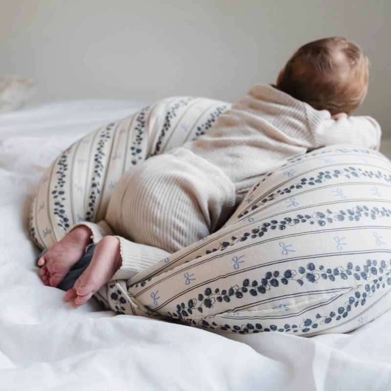 Αυτό το όμορφο, καινοτόμο και πολυλειτουργικό μαξιλάρι θηλασμού έχει σχεδιαστεί για μέλλουσες μητέρες και νέους γονείς, για να τους δώσει το καλύτερο ξεκίνημα σε ένα εντελώς νέο και υπέροχο κεφάλαιο. Το μαξιλάρι θηλασμού καλύπτει σημαντικές ανάγκες κατά τον θηλασμό ή το τάισμα με μπιμπερό του μωρού σας. Με αυτό το καινοτόμο μαξιλάρι θηλασμού, επομένως, το μόνο πράγμα στο οποίο πρέπει να εστιάσετε είναι να απολαύσετε τη στιγμή του δεσίματος με το μωρό σας. Το μαξιλάρι είναι πρακτικό και φορητό και δένει απλά γύρω από το σώμα. Αυτό το χαρακτηριστικό το καθιστά ιδιαίτερα εύκολο όταν χρειάζεται να σηκωθείτε για να σηκώσετε το μωρό σας, για παράδειγμα, από την κούνια για να θηλάσει. Σε κάθε άκρο του μαξιλαριού θηλασμού, υπάρχει ένα μικρό μαλακό φύλλο προσαρτημένο, έτσι ώστε το μωρό να έχει πάντα ένα πανάκι παρηγοριάς στο χέρι. Επιπλέον, το μαξιλάρι θηλασμού έχει σχεδιαστεί για να παρέχει τέλεια υποστήριξη, επιτρέποντάς σας να ξεκουράζεστε σε βολικό ύψος και σε βολική θέση ενώ θηλάζετε ή ταΐζετε το παιδί σας με μπιμπερό. Είναι διαμορφώσιμο, παρέχοντας άνετη στήριξη στη μητέρα και το μωρό κατά τον θηλασμό ή ως μαξιλάρι ύπνου ή οσφυϊκής υποστήριξης για έγκυες γυναίκες. Όταν τελειώσετε το θηλασμό, το μαξιλάρι θηλασμού μπορεί να χρησιμοποιηθεί ως βοήθημα για τον χρόνο της κοιλιάς ή ως μαλακό στήριγμα για να βοηθήσει τα μικρά να μάθουν πώς να κάθονται χωρίς στήριξη. Παρέχει επίσης τέλεια στήριξη όταν το μωρό είναι ξαπλωμένο μπρούμυτα, ως καρέκλα ή στήριγμα αυχένα όταν το παιδί μεγαλώνει. Υλικό και φροντίδα