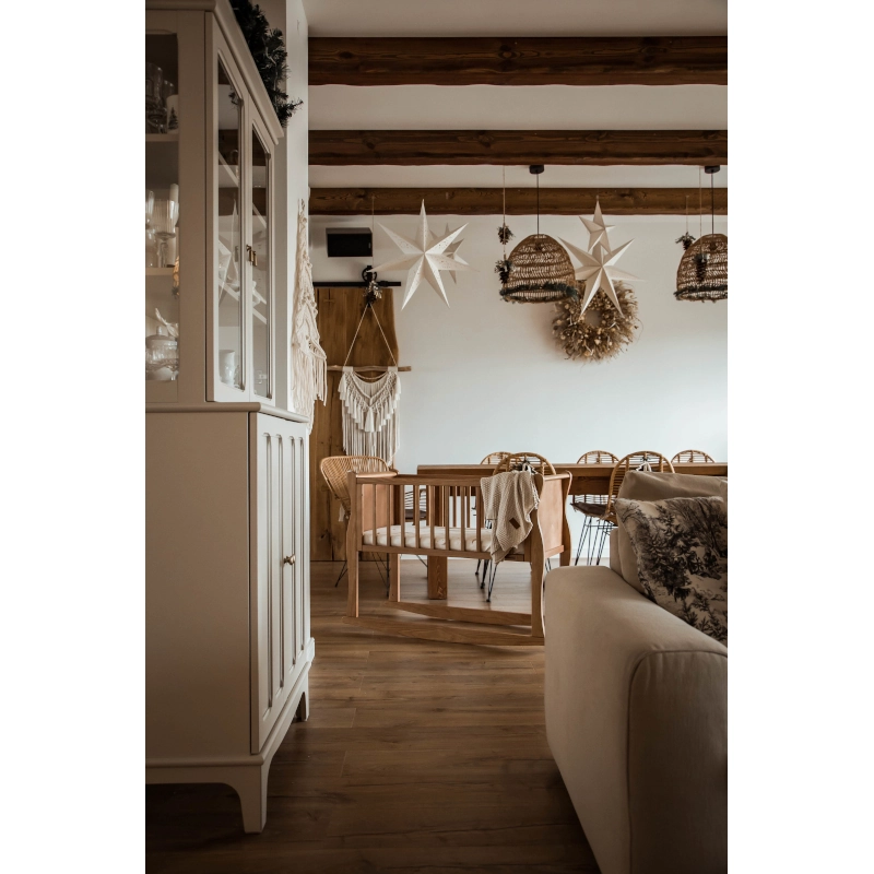 Χάρη στη σταθερή του δομή, είναι πολύ ασφαλές και ο διαχρονικός σχεδιασμός του θα δώσει μοναδικό χαρακτήρα σε κάθε εσωτερικό χώρο. Το λίκνο σάς επιτρέπει να αντιδράτε σε ήχους και εικόνες τόσο από τη δεξιά όσο και από την αριστερή πλευρά του μωρού, και όχι μόνο σε ό,τι συμβαίνει από πάνω του, όπως συμβαίνει στις καλαθούνες.