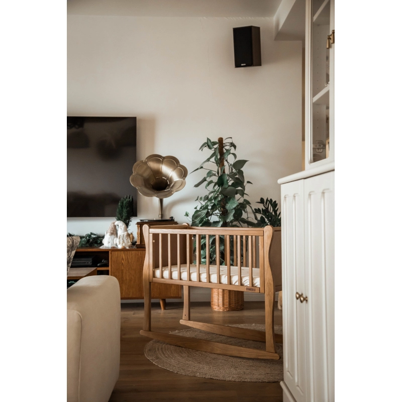 Το κουνιστό λίκνο Noble Crib είναι ένα εξαιρετικά κομψό μέρος για να κοιμάται ένα μωρό στο δωμάτιο των γονιών του τους πρώτους μήνες της ζωής του. Το μικρό μέγεθος σας επιτρέπει να χωρέσετε το λίκνο ακόμα και σε ένα μικρό υπνοδωμάτιο ή να την τοποθετήσετε δίπλα στο κρεβάτι των γονιών, διευκολύνοντας το παιδί να αποκοιμηθεί.