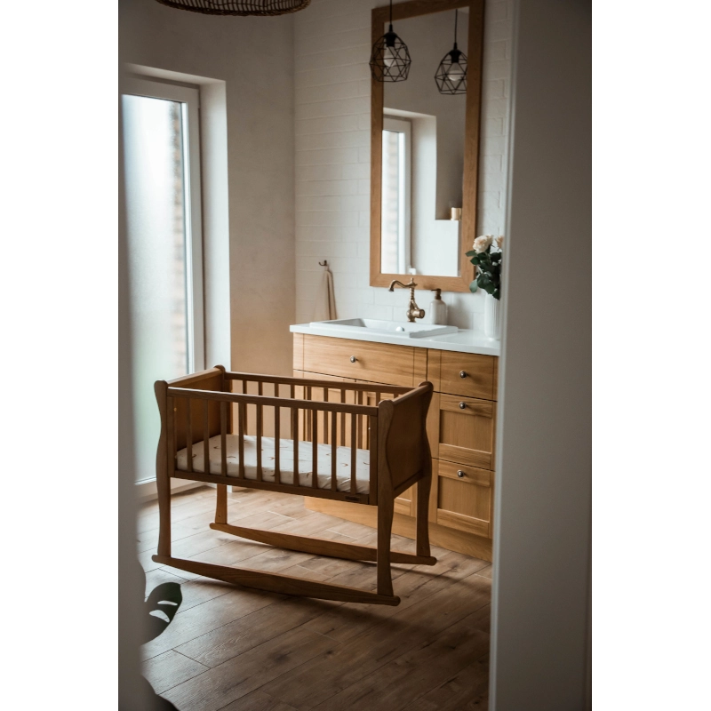 Το λίκνο είναι βαμμένο με δύο στρώσεις πιστοποιημένης βαφής, το οποίο είναι απολύτως ασφαλές ακόμα και σε επαφή με τα δόντια του παιδιού και αν καταναλωθεί από το μωρό.